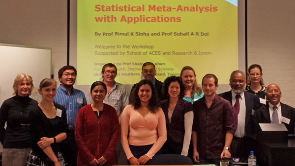 The School of Agricultural, Computational, and Environmental Sciences; and Division of Research and Innovation of the USQ hosted a workshop on “Statistical Meta-Analysis with Applications” in collaboration with the Statistical Society of Australia Inc. The workshop was held at the newly acquired Ipswich Campus of USQ from 16–17 June, 2015. Professor Bimal Sinha, University of Maryland, Baltimore County, USA and Assoc. Professor Suhail Doi, Australian National University, Canberra, Australia were the two invited presenters.