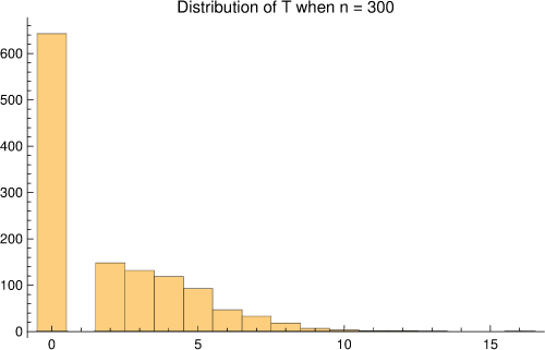 null distribution of $T_n$ below when $n = 300$; it is distribution-free in its usual sense.