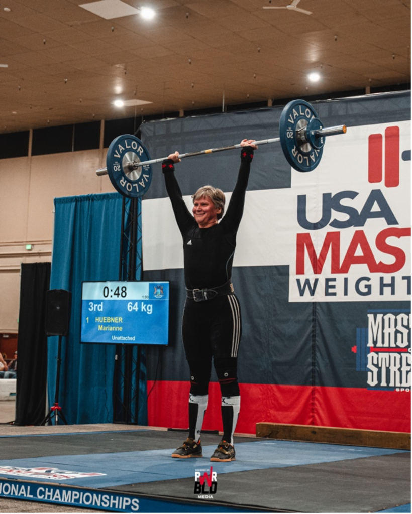 Marianne Huebner at the March 2025 USA Masters National Weightlifting Championships